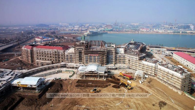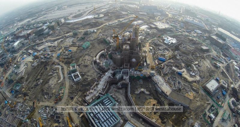 2015年2月8日,正在修建中的上海迪士尼工程,园区标志性中心景点----奇幻童话城堡清晰可见。根据《华尔街日报》消息称,上海迪士尼主题公园的开业时间从原定的2015年年底推迟至2016年上半年。报道称,这凸显了娱乐巨头迪士尼公司在中国的艰难之路。CFP