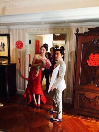 阮兆祥透漏今天早上接新娘,兄弟团被整的很惨,姐妹团用奶油兑了日本的纳豆,让他们吃光,味道很怪,另外一个兄弟林盛斌进门需要模仿跑男环节走石子路,不过因为王祖蓝一向对朋友大方,红包过万,姐妹们拿到红包后就没有再为难他们了。阮兆祥还表示说:“自己也准备了一个万元红包送给一对新人。”