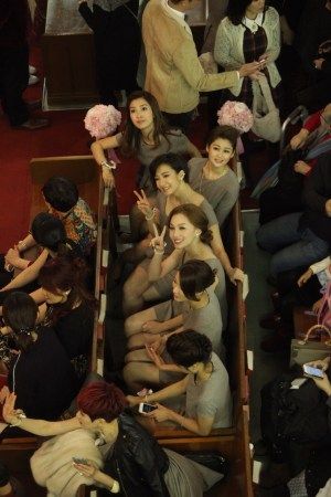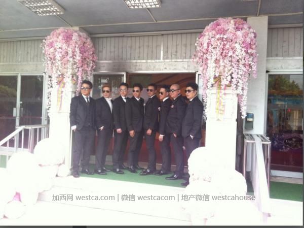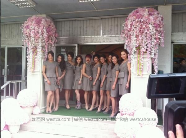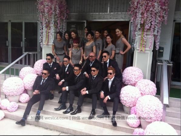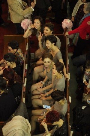 姐妹团今日也是一大亮点,姐妹团今日全部着短裙低胸装出席婚礼,当记者无意中拍到姐妹们走光位置,后来姐妹们发现,才急忙捂着胸部,避免走光