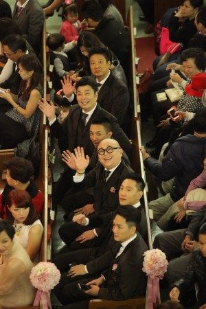 中午12时,网易娱乐报道组抵达婚礼举办场地。现场已被基本布置妥当,教会大门被粉红色玫瑰花球围绕,入场口两人在马尔代夫的婚纱照海报十分醒目,而工作人员在进行最后的准备工作。中午12时45分,钱家乐、钟嘉欣、岑丽香、孙耀威、蔡少芬张晋等先后提前到场采排。