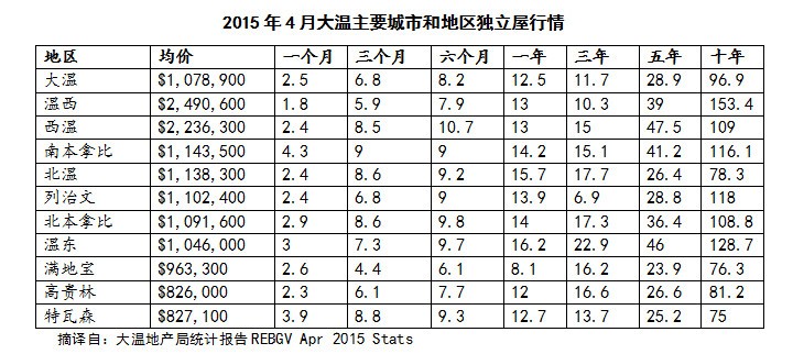 大温地产局: 大温地产局报告 四月房屋供不应求