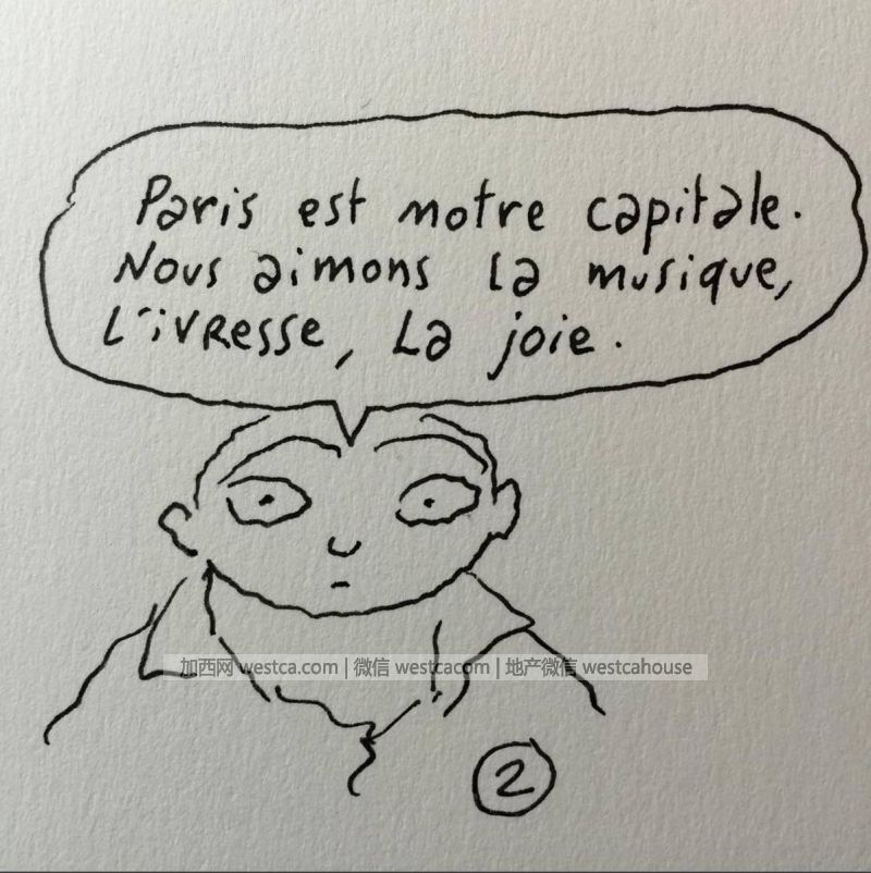 漫画家说:任何的恐怖主义无法改变巴黎人热爱自由的生活方式,他说:心里有爱,热爱生命的人,总能笑到最后,因此他说:世界各地的朋友们,感谢你们为巴黎祈福,但我们不需要更多祷告。我们的信念融入了....对音乐/亲吻/生命/香槟/快乐的热爱里。。。#巴黎是一种生活方式#