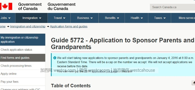 联邦移民部日前在网站上发布简短公告指:我们将于2016年1月4日东部标准时间上午8时(温哥华时间清晨5时)开始接受新的父母及祖父母担保移民申请。在上述时间之前不接收新申请个案。2016年接受的个案数量将有限制(There will be a cap on the number we accept)。申请人现在可以通过该网站获得全套申请表格。值得注意的是,在这一公告中移民部只说今年接收个案「会有上限」,并没有肯定将接受10,000个名额。
