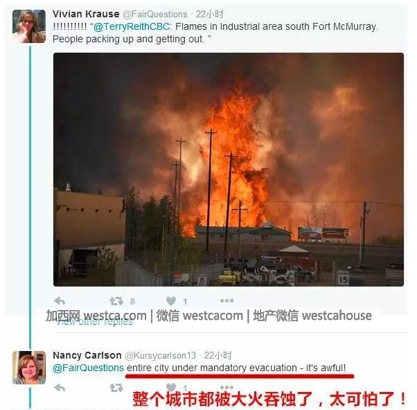 消防透过Twitter发出上述通知,皇家骑警就逐家逐户通知居民,当局同时准备了巴士接载居民。