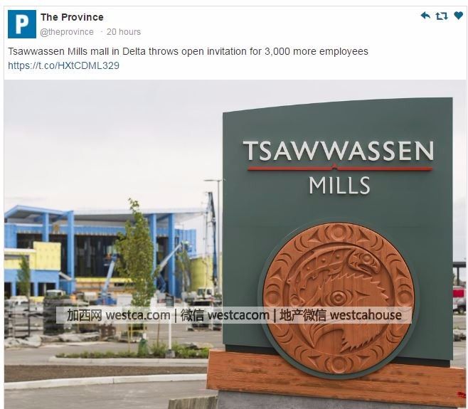 (加西网综合)温哥华南部小镇Tsawwassen的Tsawwassen Mills商业中心又要开始招人啦!