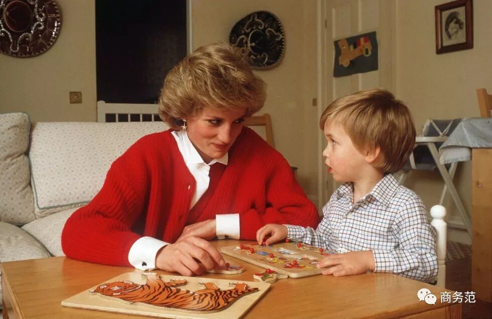 日常居家感也是很重要的一个元素,像戴安娜王妃和威廉王子这张照片,就和普通的中产之家没什么两样,母子间的眼神交流,非常的温馨,王室其实也有普通人的一面。
