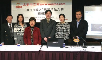 北美中文网www.westca.com于1月16日假中华文化中心为其2008“我在加拿大”视频作品大赛举办了新闻发布会,与会佳宾包括大会评委卢梁嫣薇、陆毅鹏及联邦自由党京士威选候选人袁薇等多知名人士。