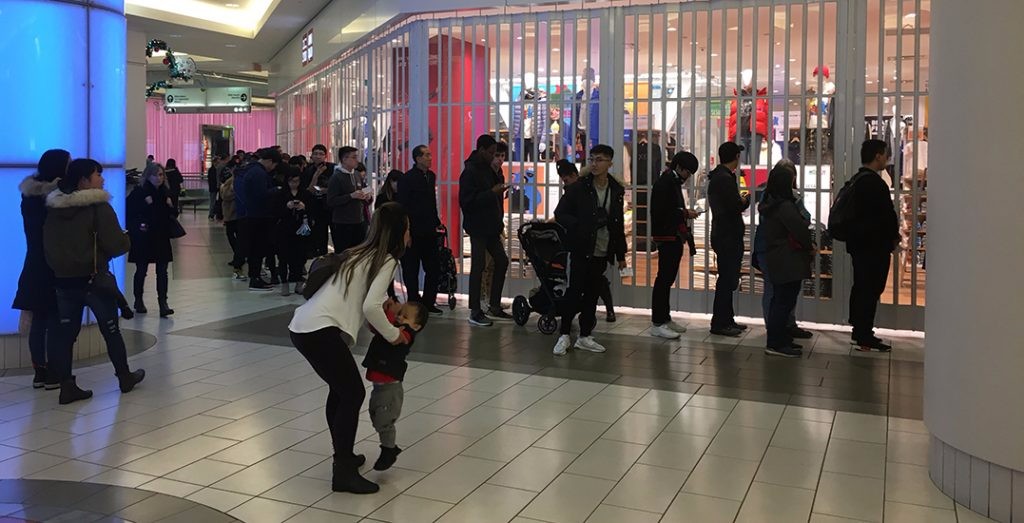 今天早上拉上线早早打开大门迎客的本那比Metrotown铁道镇商场就是这样一副情况,