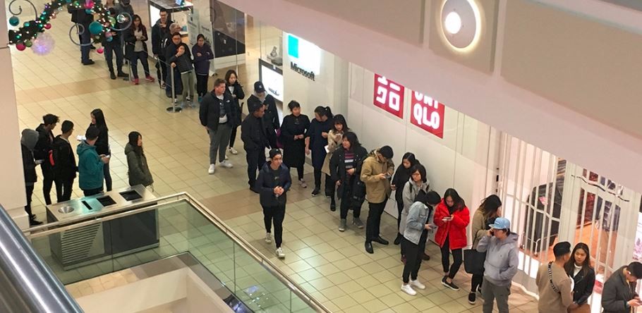 假的。 我8点去Metrotown,除了服务台购买礼物卡的排队外,没有一家店牌多。