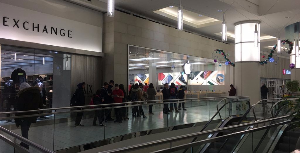假的。 我8点去Metrotown,除了服务台购买礼物卡的排队外,没有一家店牌多。