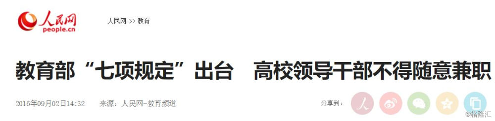 ¡¡¡¡[6]. ¡¶½ÌÓý²¿¡°ÆßÏî¹æ¶¨¡±³ǫ̈ ¸ßУÁìµ¼¸É²¿²»µÃËæÒâ¼æÖ°¡·£¬ÈËÃñÍø½ÌÓýƵµÀ£¬2016Äê
