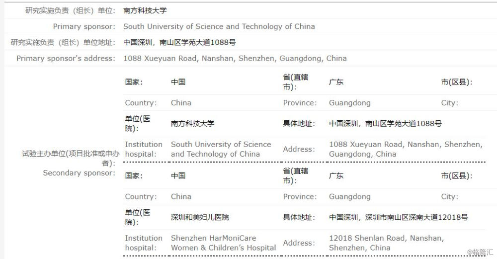 ¡¡¡¡ÔÚÖйúÁÙ´²ÊµÑé×¢²áÖÐÐÄ¡°ChiCTR1800019378¡±ºÅ±¸°¸×ÊÁÏÉÏ£¬Ã÷È·ÏÔʾºØ½¨¿ü¡°»ùÒò±à¼­Ó¤¶ù¡±µÄÁÙ´²ÊÔÑéÆô¶¯ÓÚ2017Äê3ÔÂ7ÈÕ£¨Â×ÀíÉó²éÎļþ£©¡£¡ª¡ª¹Ø¼üÊÇ£¬¸Ã±¸°¸ÐÅÏ¢ÉÏͬʱ¹«¿ªÏÔʾÑо¿ÊµÊ©¸ºÔðµ¥Î»ÊÇÉîÛÚÄÏ·½¿Æ¼¼´óѧ¡£