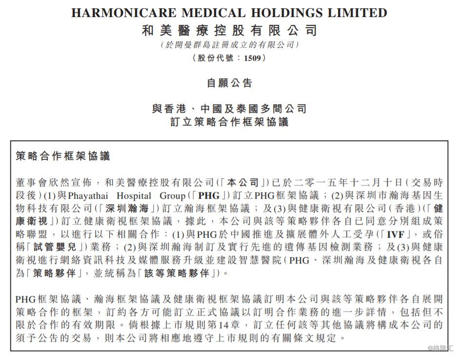 ¡¡¡¡2015Äê12ÔÂ10ÈÕ£¬ÉÏÊй«Ë¾ºÍÃÀÒ½Áƹ«¸æ³Æ£¬ÓëÉîÛÚ嫺£»ùÒòºÍÏã¸Û½¡¿µÎÀÊÓÇ©¶©ºÏ×÷¿ò¼ÜЭÒé£¬ÍÆ¹ãµÄÒµÎñÀïÃæ¾Í°üÀ¨ÊÔ¹ÜÓ¤¶ùºÍ»ùÒò¼ì²â¡£ÔÚÕâ´ÎºÏ×÷ЭÒéµÄǩԼÏÖ³¡£¬´ú±íÉîÛÚ嫺£µÄ¾ÍÊǺؽ¨¿üºÍÁÖ־ͨ¡£