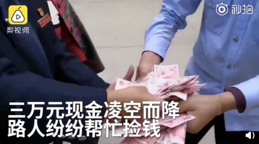 路人見狀卻沒有哄搶,而是紛紛撿起路上的錢,匯總交給了當地的民警,並囑托其抓緊清點一下,送還給失主。