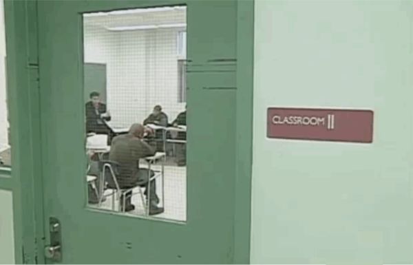教学区位于大楼深处,两头都有狱警把守。再次签到后,我终于见到这一班特殊学生们。他们规规矩矩地沿墙围坐,除了穿着统一的深绿色囚服之外,他们的外表和任何一个大学里的学生并没有显着的不同,并非电影里看到的那种怙恶不悛、凶神恶煞。我原先有点忐忑的心情很快平静了下来。
