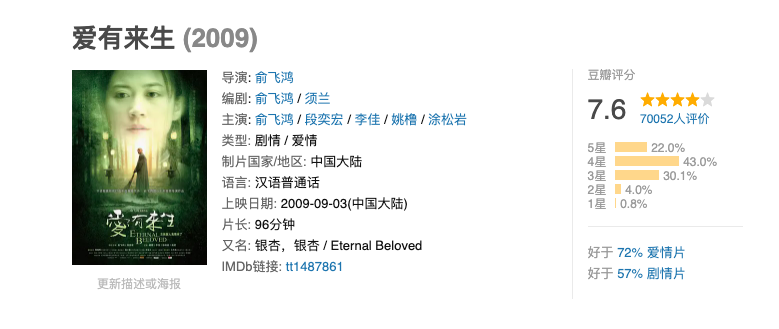 这部电影的口碑还是不错的,在豆瓣上有7.6分的好评,还获得了大学生最佳处女作奖。