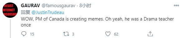 “哇,杜魯多也用了表情包,哦對,他以前是戲劇老師!”