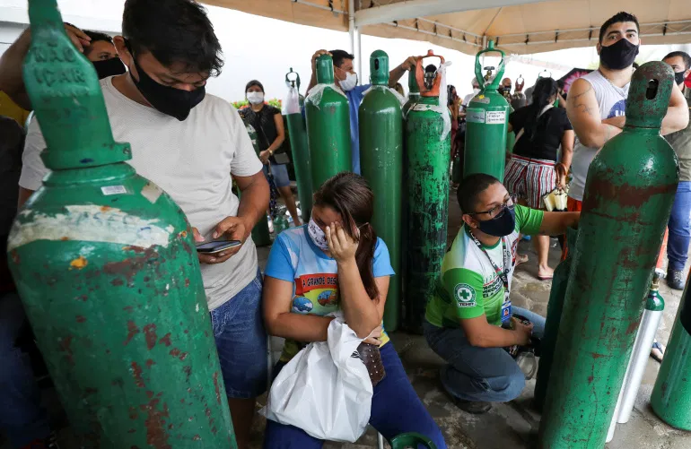 医院用光了氧气瓶,一个小镇里75%的人都感染了新冠,医疗体系完全崩溃,尸体无处安放...最可怕的是,这里发现的P.1变种病毒有可以绕开人体免疫机制的能力,更加难以防御。