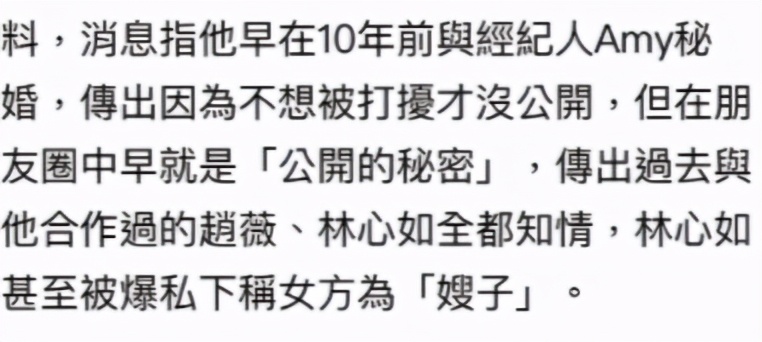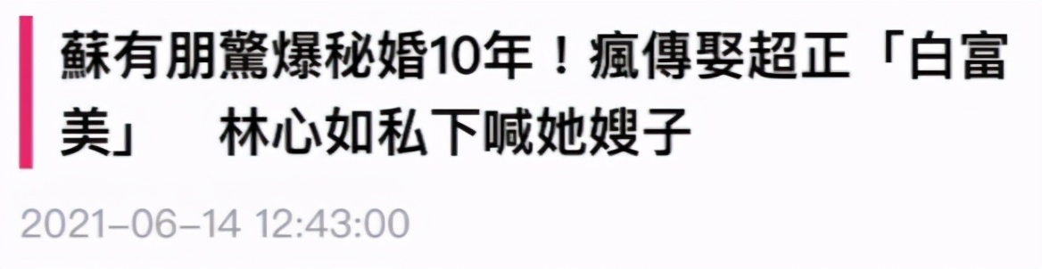 6月14日,据港媒报道,苏有朋其实已经隐婚10年,对象就是他的白富美经纪人Amy。