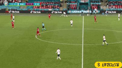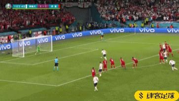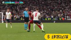 第 103 分钟,斯特林禁区内被梅勒和延森放倒,主裁判判罚点球。凯恩主罚点球被小舒梅切尔扑出,但是凯恩第二反应很快补射破门,英格兰 2-1 丹麦。