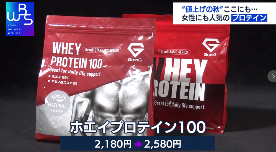 日本雅虎新聞網站轉載的這篇報道源自東京電視台經濟頻道“テレ東BIZ”19日的視頻新聞,據其稱,今年秋天,一波漲價潮湧向面食、點心面包、色拉油等各種產品,蛋白粉也是其中之一。在如今的日本,除了堅持力量訓練的人外,女性和老年人也開始關注這一營養性食品補充劑。
