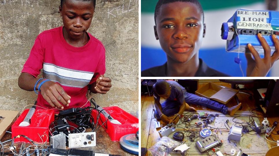 開爾文·多伊,出生在極端貧困的塞拉利昂,這裡的年人均GDP不足500美元,約合人民幣3000元。但是貧窮並未限制他的思想,他從小就對電子設備興趣濃厚,12歲通過自學工程學建立了自己的廣播電台,為當地人播放音樂和新聞,還喜歡用廢棄的電子產品制作發電機、電池、發射機...後來還受邀到哈佛大學講課,被稱為非洲工程學奇才。