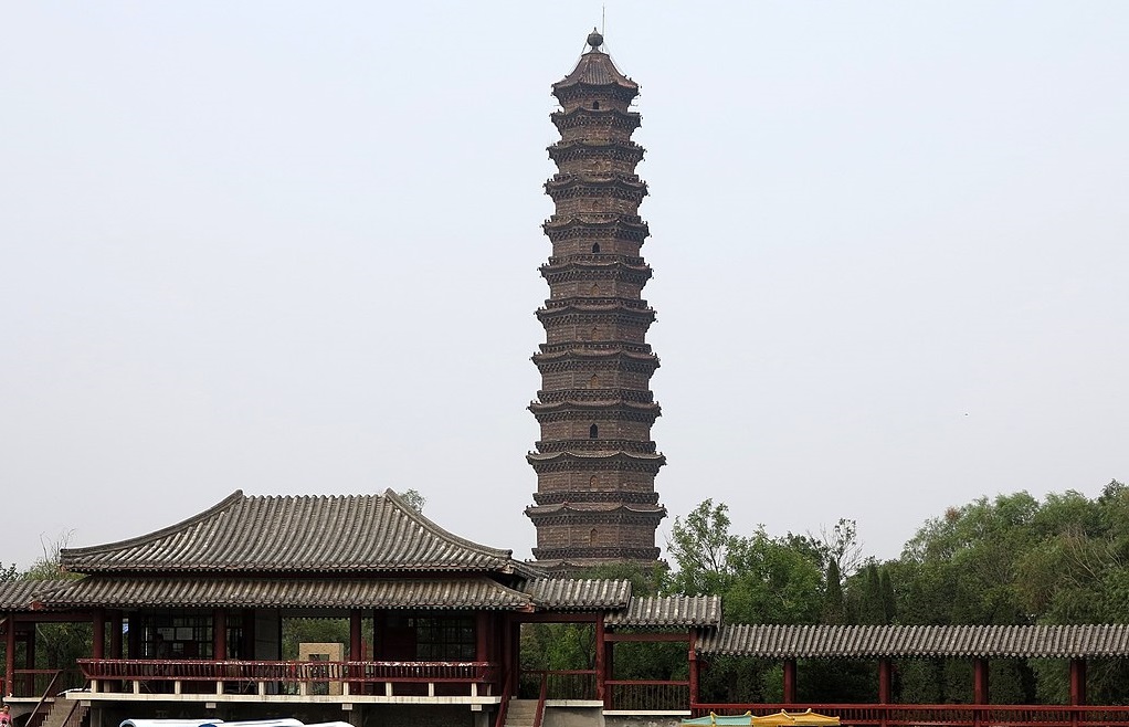 河南開封佑國寺塔,建於北宋年間,塔身以褐色琉璃瓦鑲嵌,酷似鐵色,被稱為“鐵塔”。至今九百多年,經歷了無數的地震、洪水和戰火,依然保存完好,尤其是1847年,黃河泛濫,水淹開封,周圍的建築蕩然無存,唯有鐵塔屹立不倒,鐵塔之名,當之無愧。