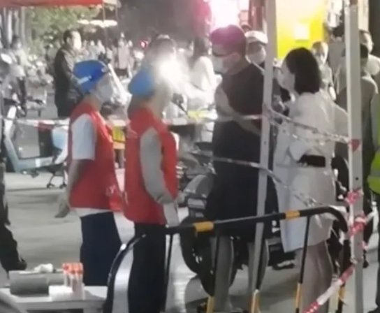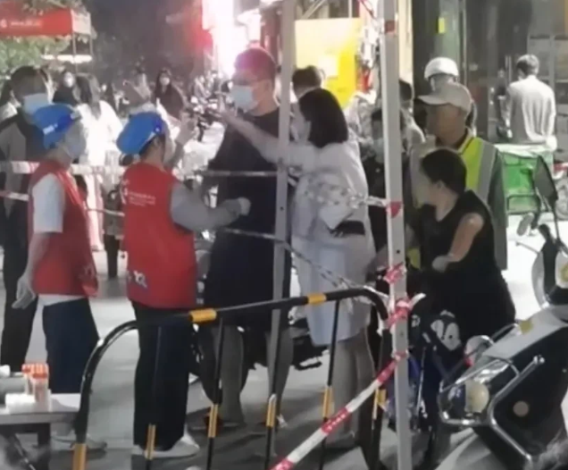 队伍太长,做核酸也需要时间,女子想要插队,于是带着老公向义工寻求帮助。