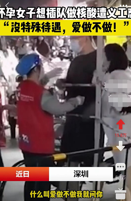 原来这孕妇想插队做核酸,却遭到义工的反怼:“没有特殊待遇,爱做不做!”