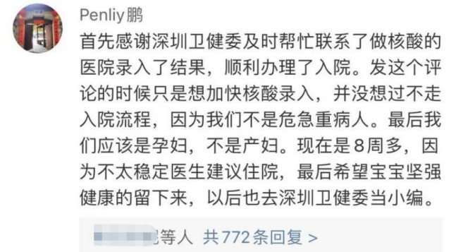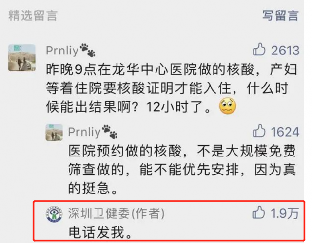 在深圳卫健委的公众号里,有一位网友留下了评论。