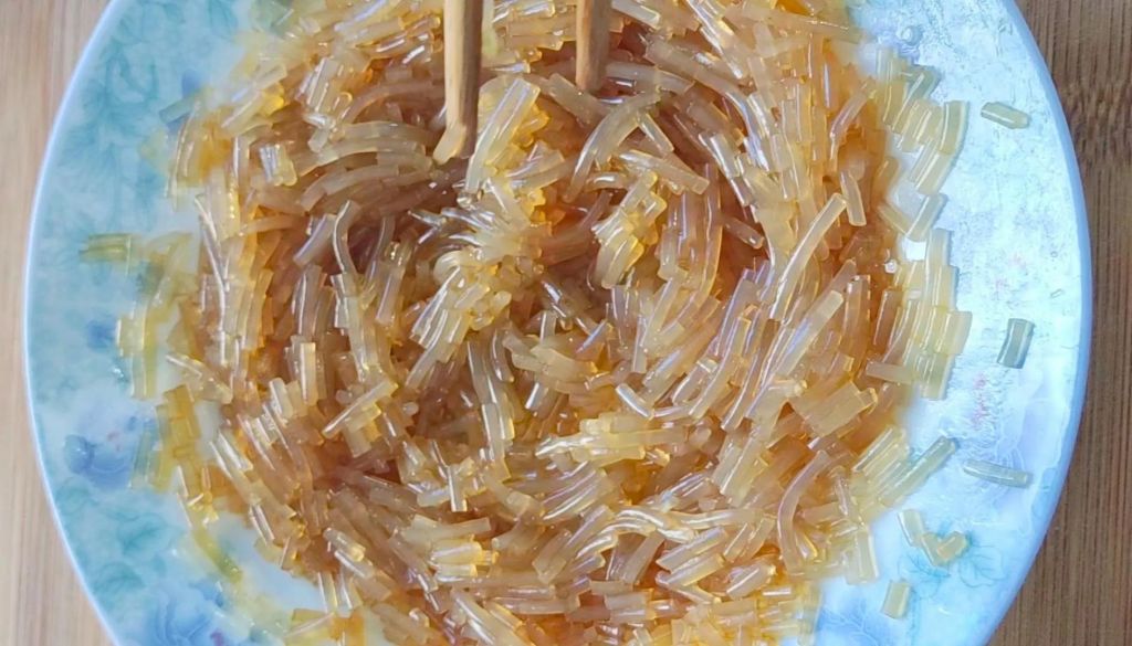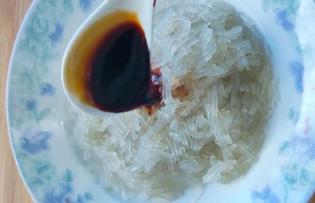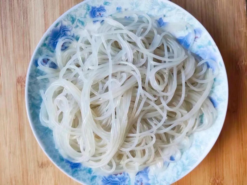 1、红薯粉丝提前温水泡1小时。