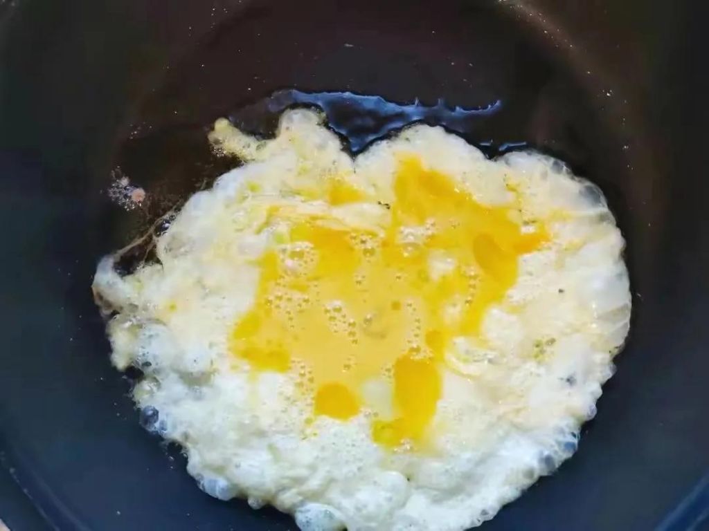 4、起锅烧油,油热倒入鸡蛋液。