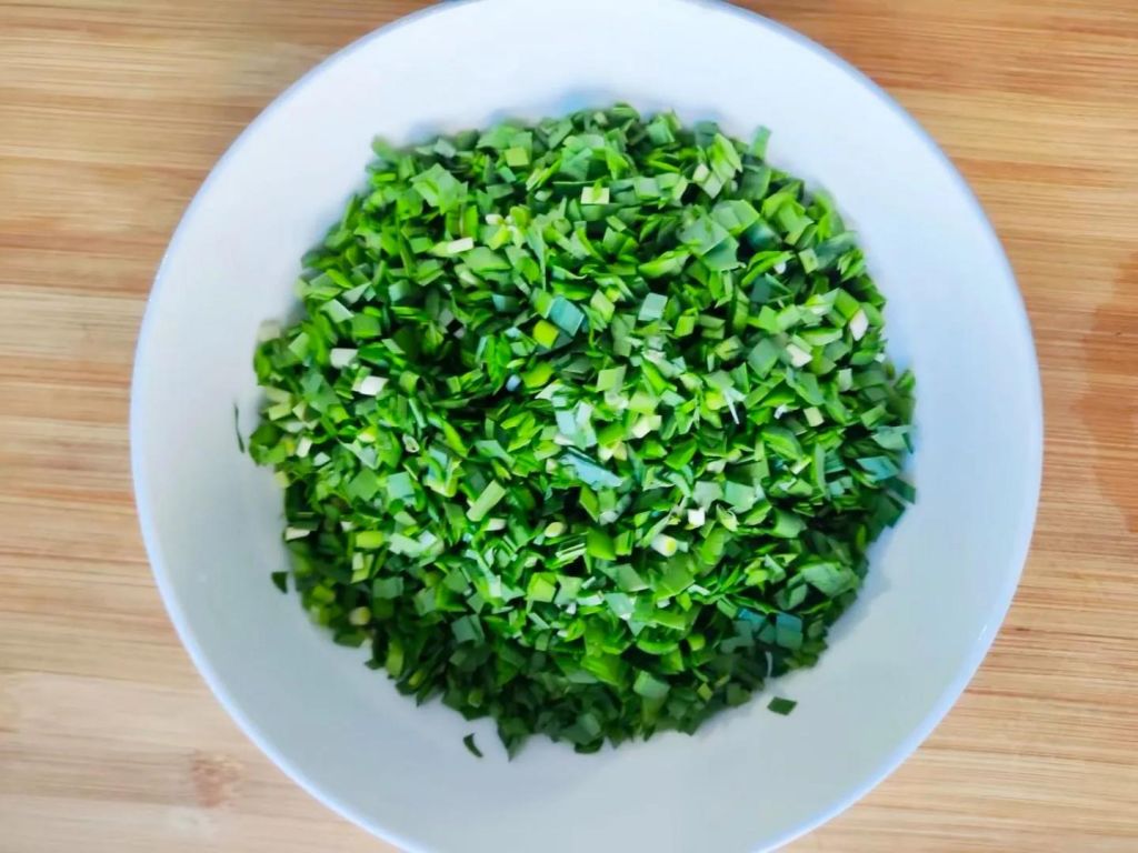 5、韭菜洗净切碎末,放入大碗中。