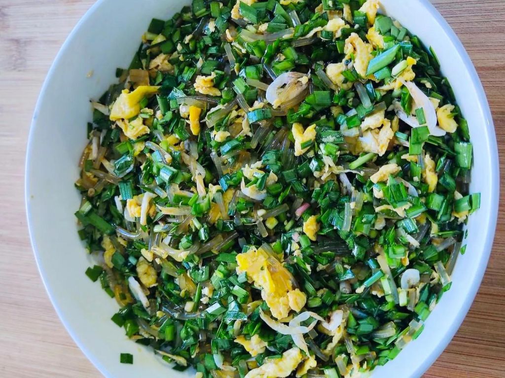 食材:韭菜、鸡蛋、粉条、虾皮、蚝油。