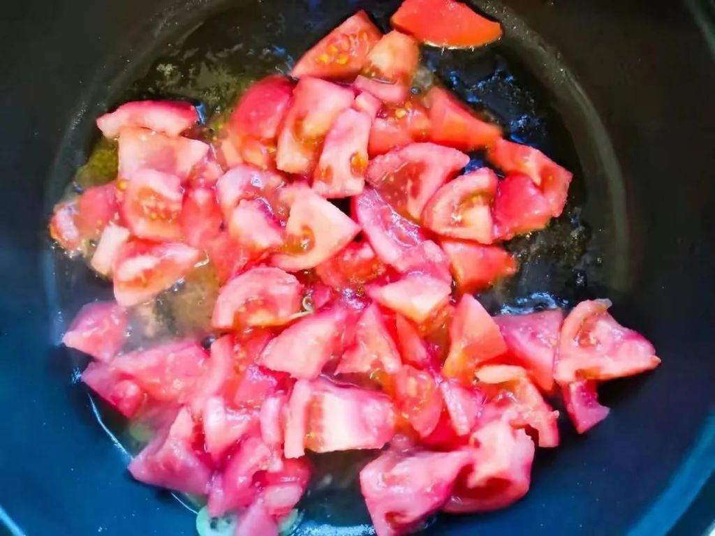 3、炒西红柿要小火,大火的话很容易把汤汁都炒没了。