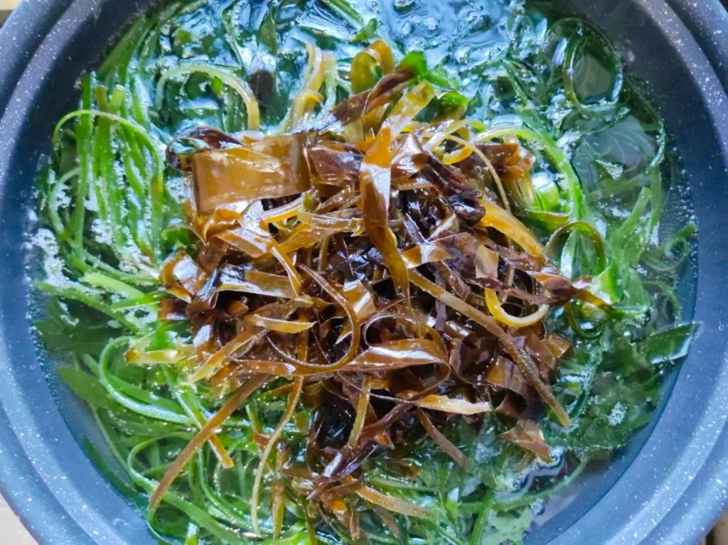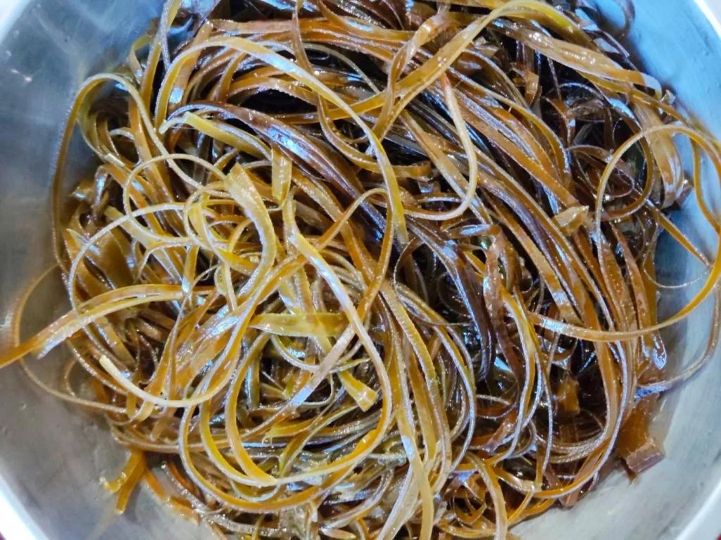 1、海带放进大盆里,投洗2遍。