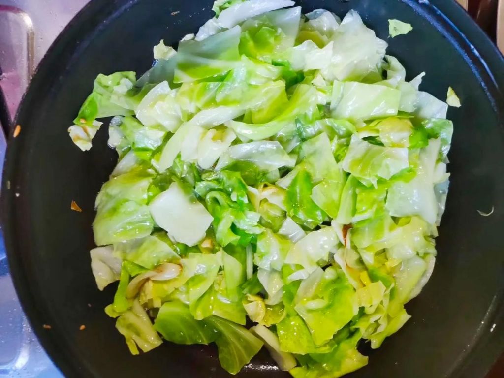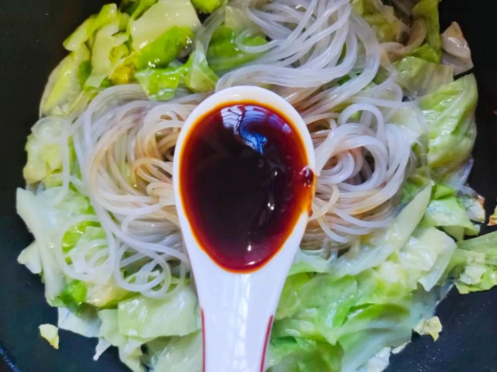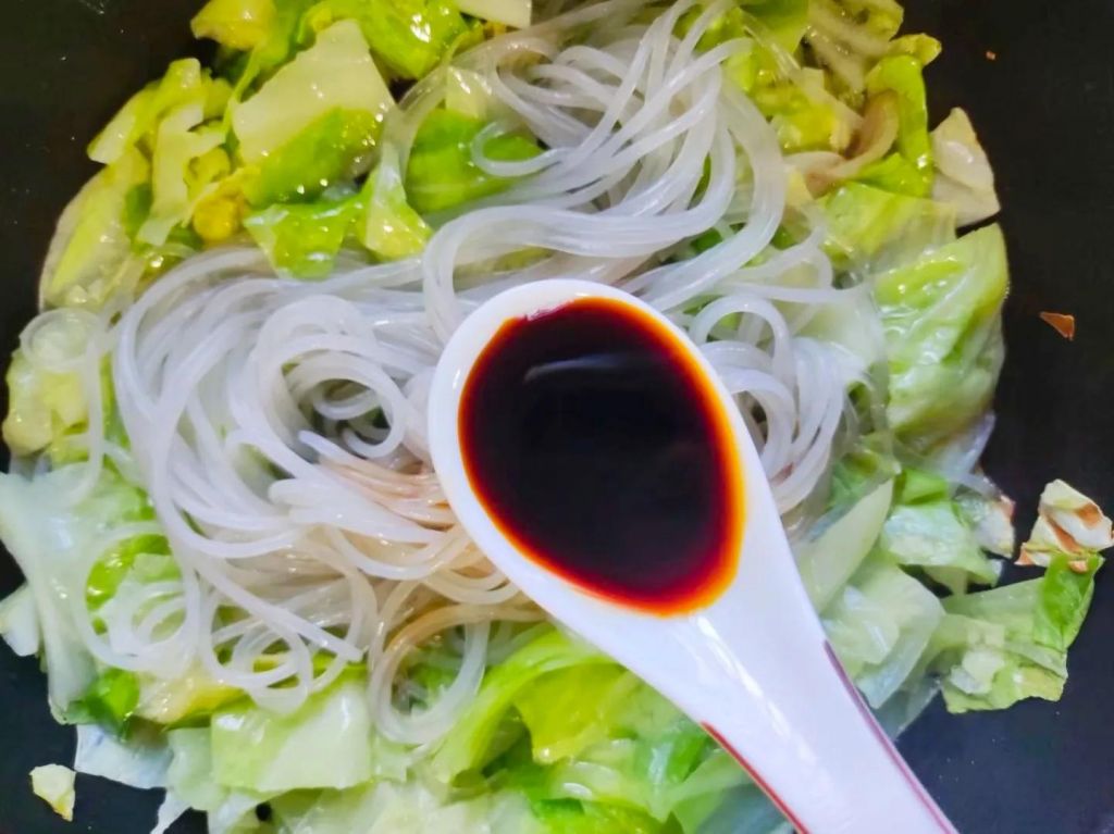 材料:包菜,红薯粉丝,蒜末,生抽,老抽