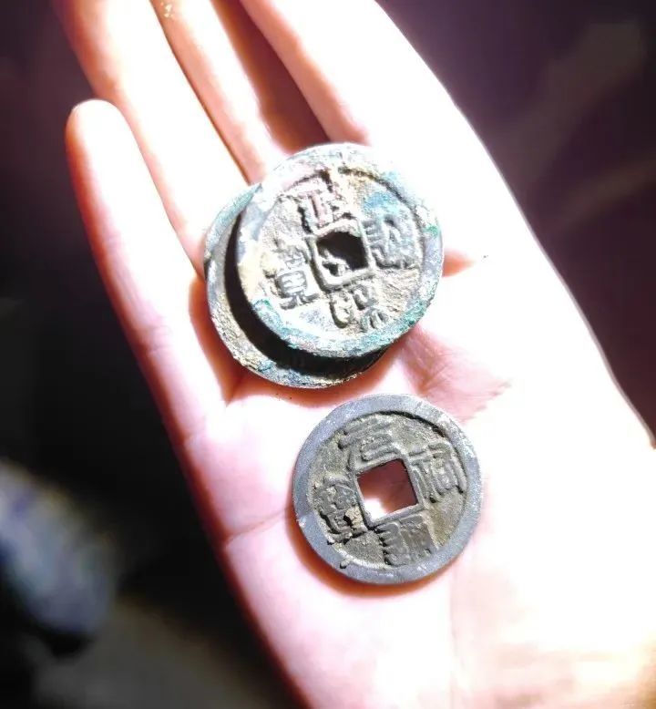 “这在我们当地还是第一次发现这么多的古钱币,此前发现都是很少量的,几十枚到一两百枚。”张智强说,这些钱币因为氧化,黏在了一起,经过对几枚钱币清洗,发现上面有北宋“熙宁”“元佑”等字样,同时还有南宋“淳熙元宝”“庆元通宝”等字眼,因此,初步判断这些钱币都是宋朝时期的。