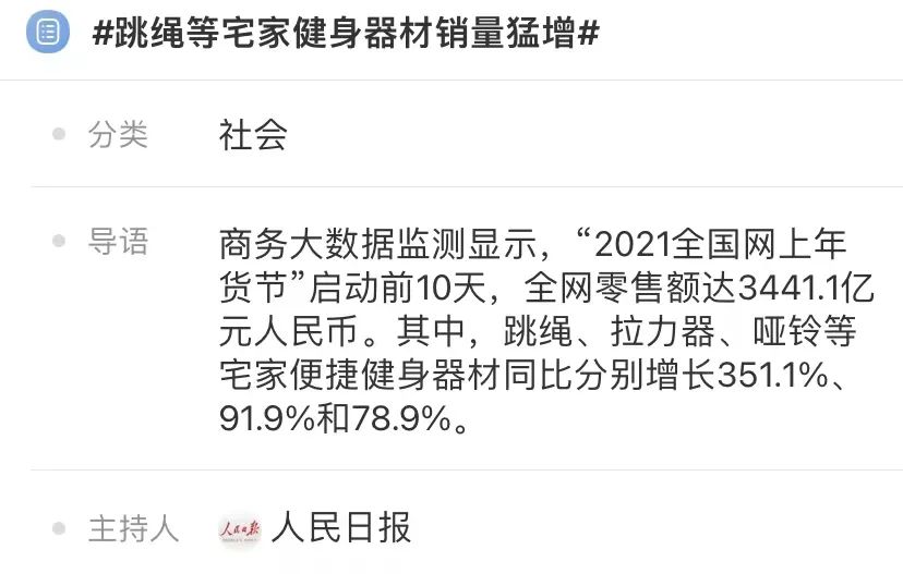 “跳绳减脂”的关键词,长期活跃在各大社交平台的运动专栏,相关运动装备销量一路飙升。