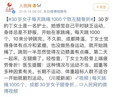 “30岁女子每天跳绳1000个致骨折”