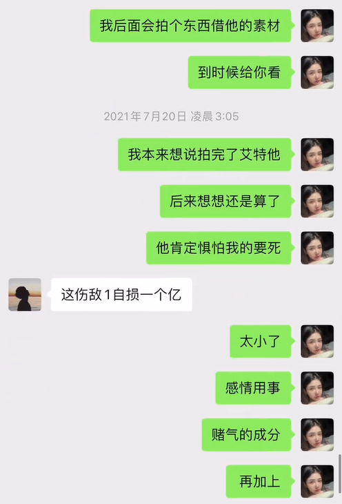 郭子瑜跟朋友这段对话时间发生在2021年7月20日,当时正是吴某某事件闹大的时间点。她讲李易峰非常闲,且能喝酒,早上五点要化妆工作,3点还在跟自己喝酒,称自己若是要出来锤他,那么头条就不再是吴某。在谈恋爱两年期间,李易峰对她呼来喝去,还不出机票和酒店钱。