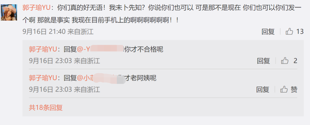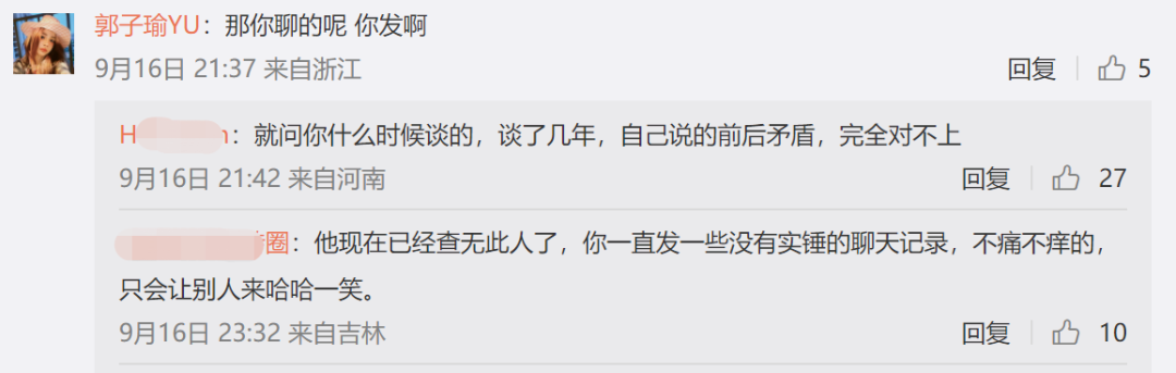 尽管郭子瑜放了聊天记录,网友还是质疑声不断,说放出的聊天记录都是P图,郭子瑜就在评论区怼了回去。对于经纪人签合同那段,网友要她把记录晒出来,她表示是经纪人通过微博私信联系的,还打了电话,但是换手机之后就没了,让大家别逼她,已经很努力在找了,总之就是没骗人。