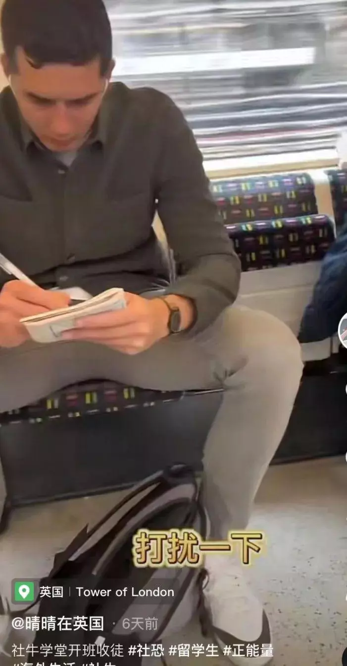 還有在英國地鐵上,這個女網紅也是花式打擾別人正常休息,當別人在做填字游戲時,她硬生生要去打斷別人。