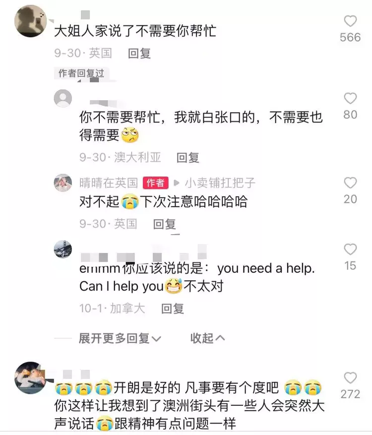 這一舉動在一些網友看來,並不是所謂的“社牛”,而是讓人感到尷尬,有網友說人家都說了不需要你幫忙,非要湊上去,感覺就是不需要也得需要,要不就是白張口問。雖然這位“晴晴”在評論區也表達了歉意,但依舊遭到許多網友的吐槽,說她很多社牛行為其實是沒禮貌。
