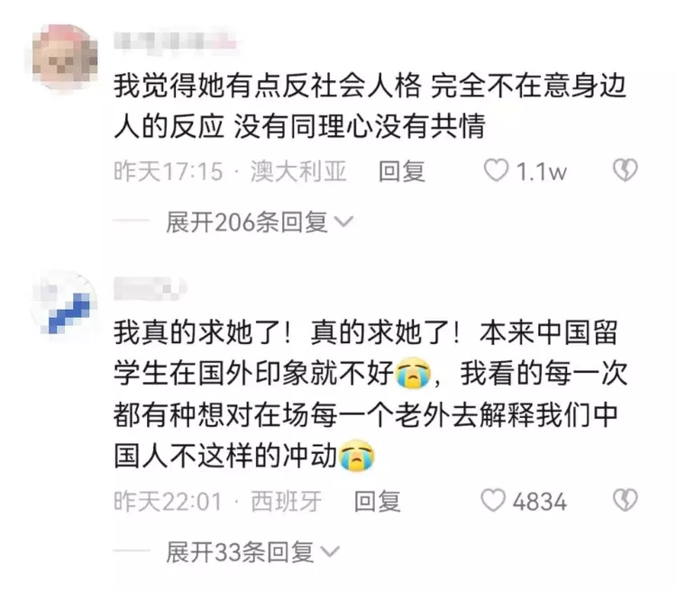 她的種種行為,遭到諸多網友的吐槽,有的網友甚至罵她在丑化中國留學生形象,有的則是說她太過表演型人格,還有的網友說她這種不是社牛,反而在許多人眼中是沒有禮貌的人。更多的網友都認為這位網紅太丟國人的臉了。