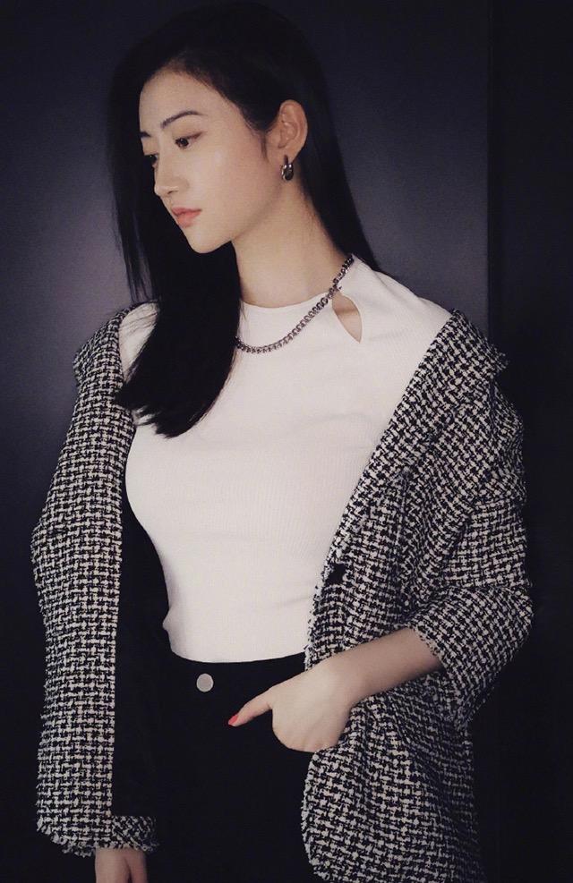 日常的穿搭中,如果选择无痕套装,也没有任何腰线的修饰,就很容易显得身材比例不够优越。景甜的这组穿搭,巧妙地运用了色彩的过渡,来呈现上短下长的比例感,也是明智之选。