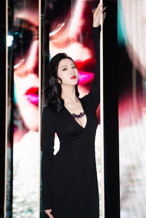 景甜选择了一件黑色无痕裙,完美的修身款式,配上巧妙的V领设计。自信的秀出曲线美,同时勾勒出挺拔的线条感。一抹明媚的红唇,贵气又吸睛。