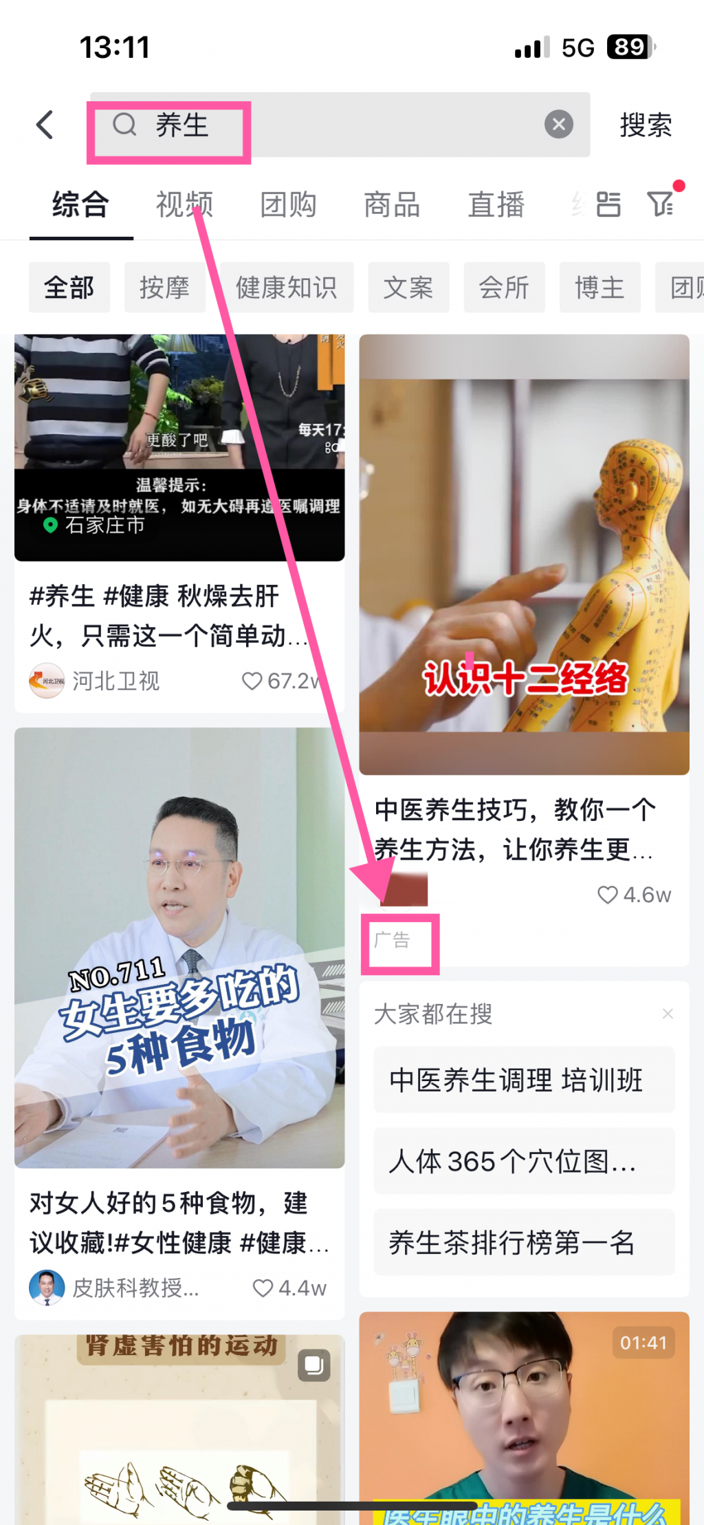 記者實測發現,主要社交平台對“醫生”“醫學科普”“養生保健”等關鍵詞進行了算法設置,會屏蔽很多“一眼假”的信息。如果用戶通過這些關鍵詞檢索,大部分結果來自已經通過身份認證的醫護人員。不過,有一些標注為“廣告”的賬戶也會出現在搜索結果中,觀看者對這類視頻須加以辨別。