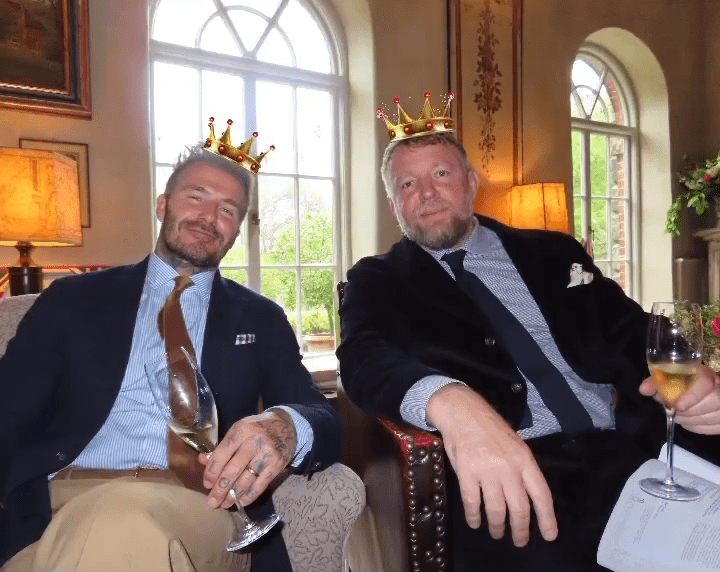 贝克汉姆与多年好友,着名导演盖·里奇合影。两人都是西装革履,手持高脚杯,看得出两人交情相当不错,聚在一起时,都很放松。调皮的维多利亚还给两人各P上了一顶皇冠,也是童心未泯了。