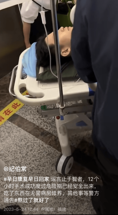 从画面看,石佳明手术后的情况确实还好,有不少家人已前往医院陪伴。